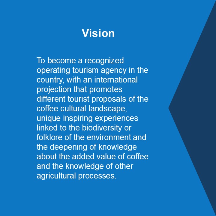 We are an Operating Tourism Agency that provides immersive experiences about coffee, its components, and other agricultural processes. We promote and market national and internationally tourism, products and services in Colombia, the Coffee Region.